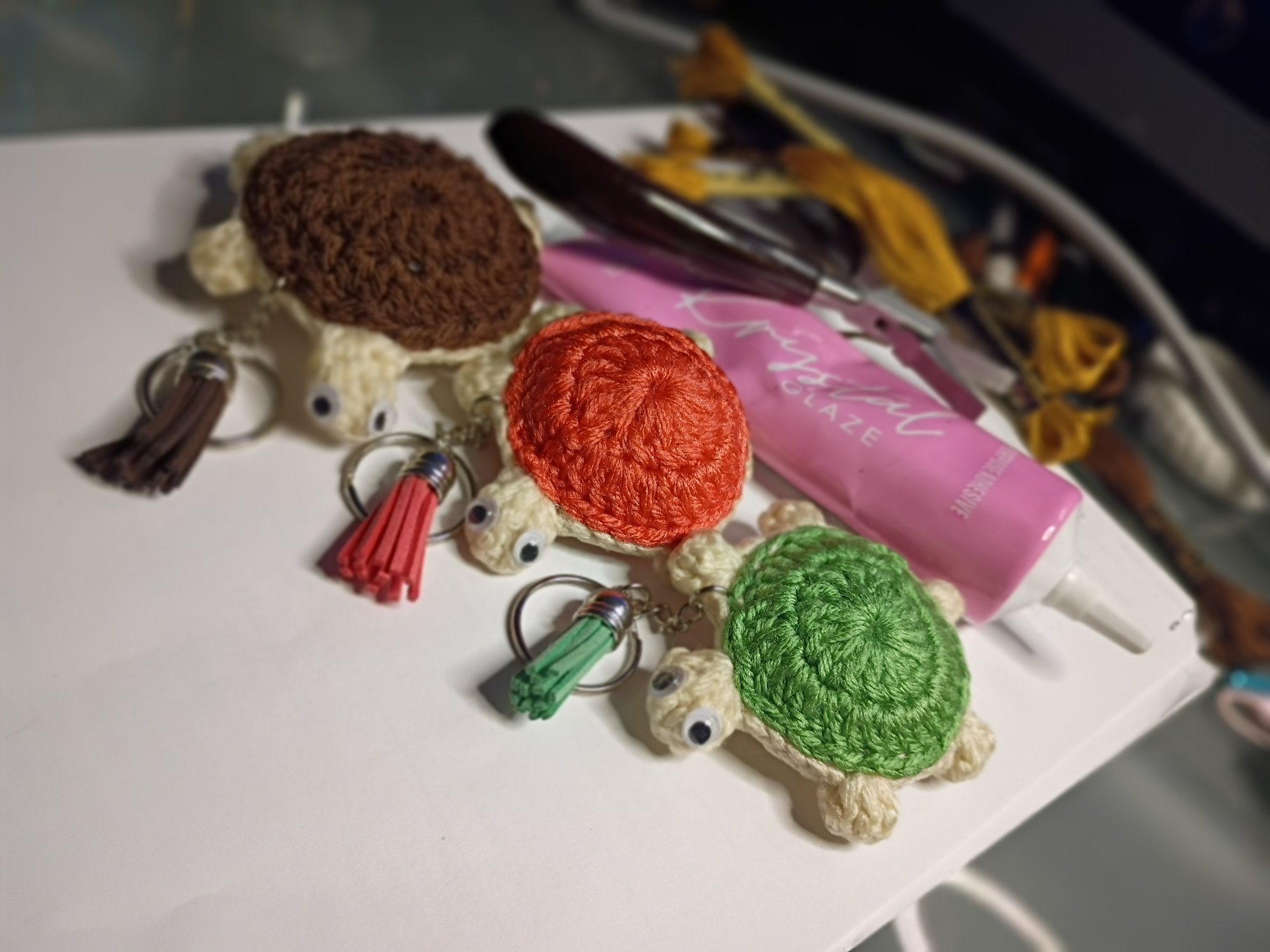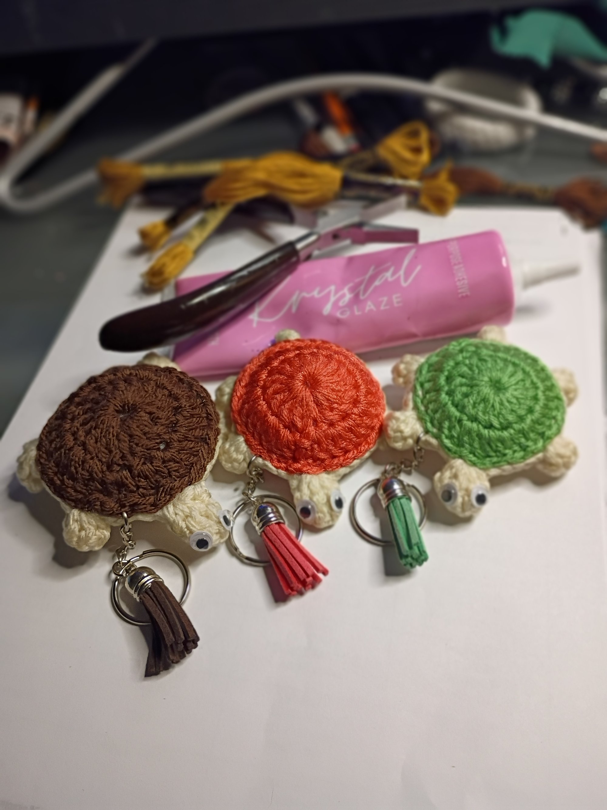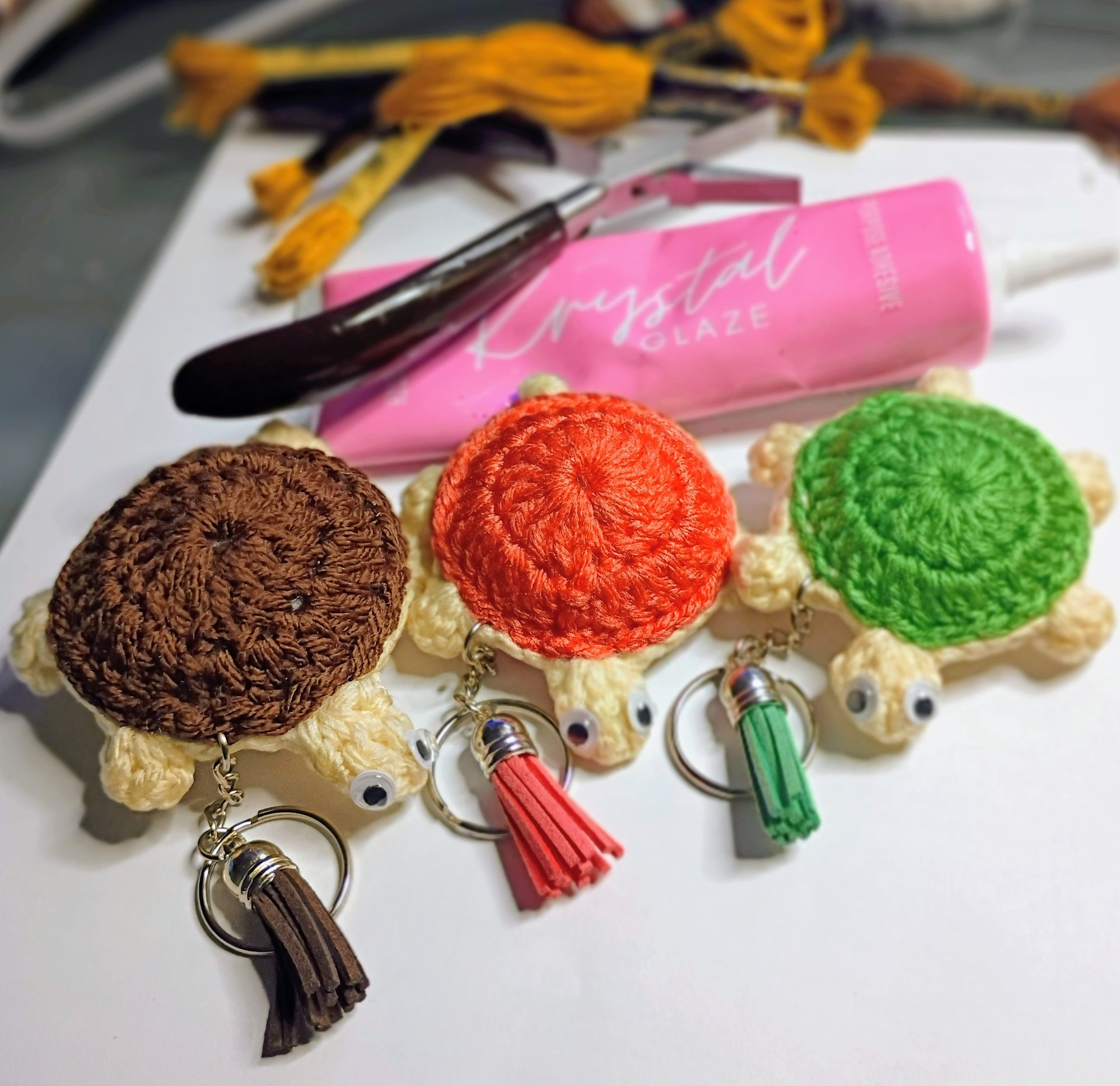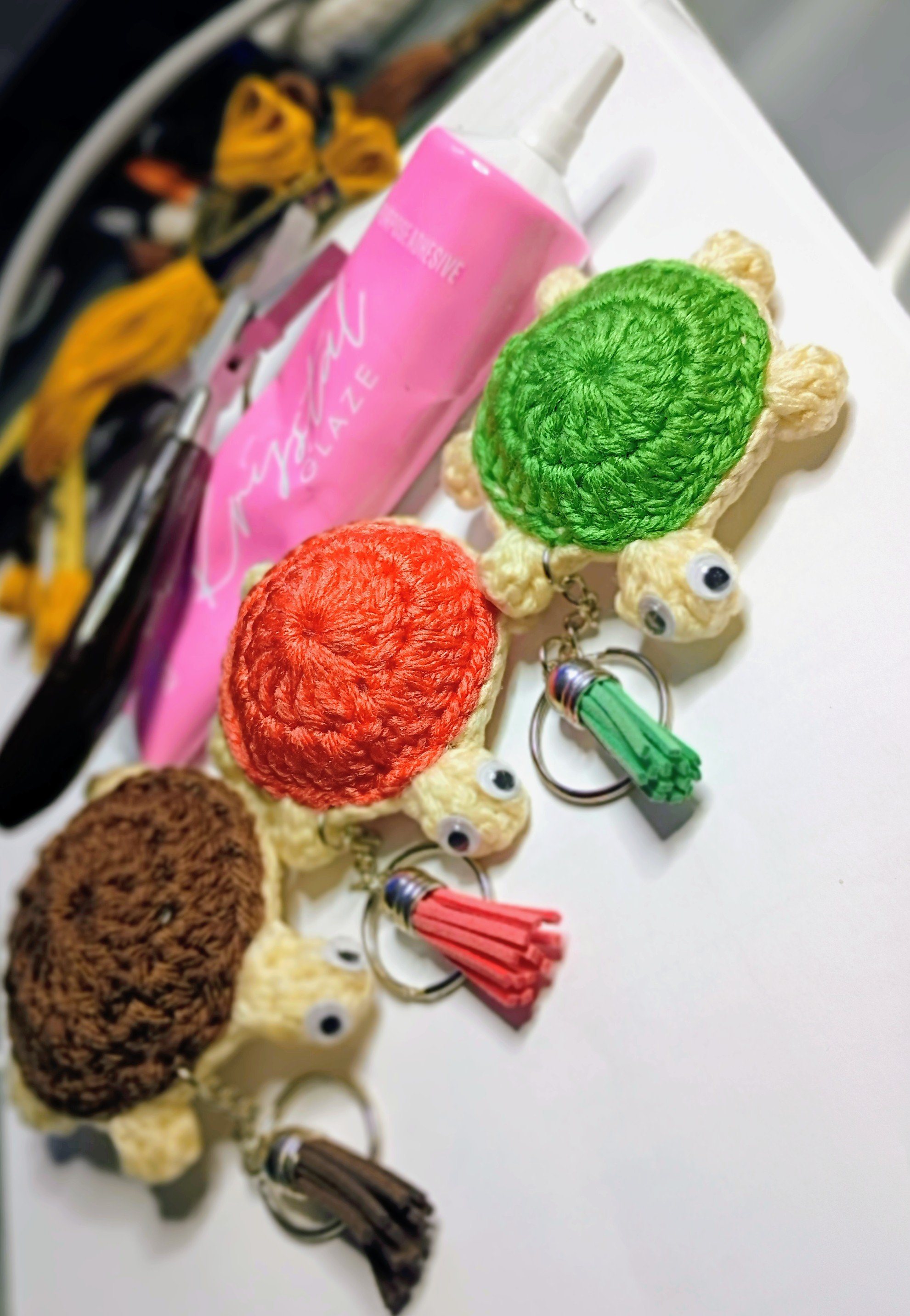 Mini Shell Buddy handmade Crochet Turtle Keychain with tassel